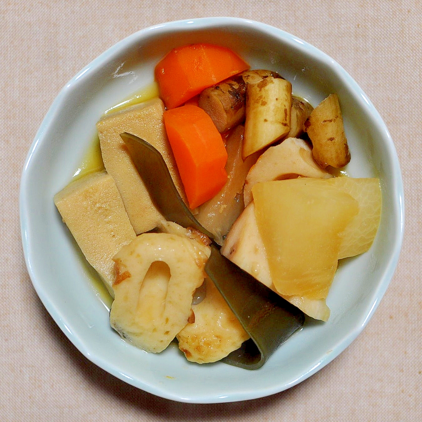 メーカーに問い合わせする前に 高野豆腐の炊き合わせ 水は方円の器に随う