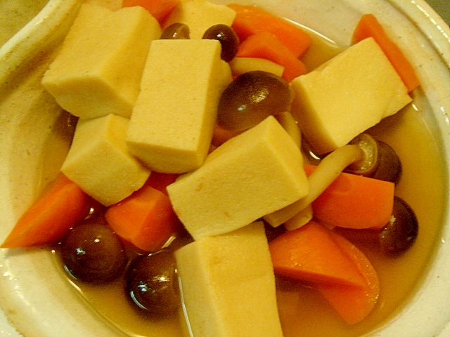 高野豆腐と人参 しめじの炊き合わせ レンジで簡単 レシピ 作り方 By ねあっっ 楽天レシピ